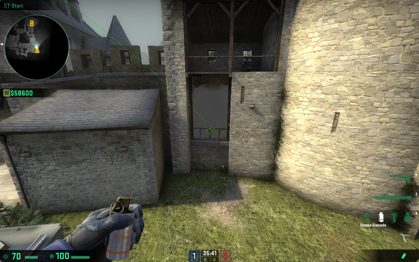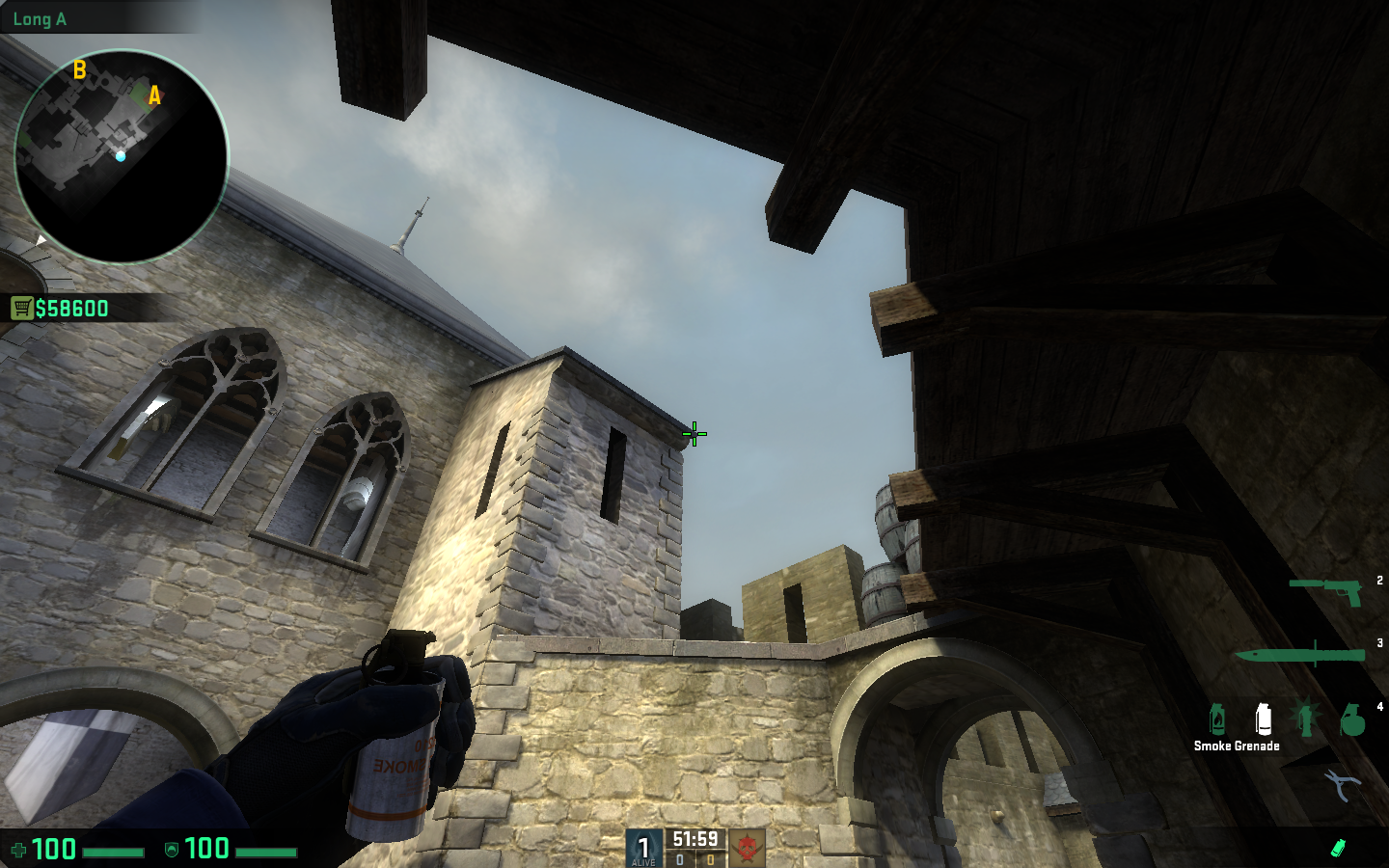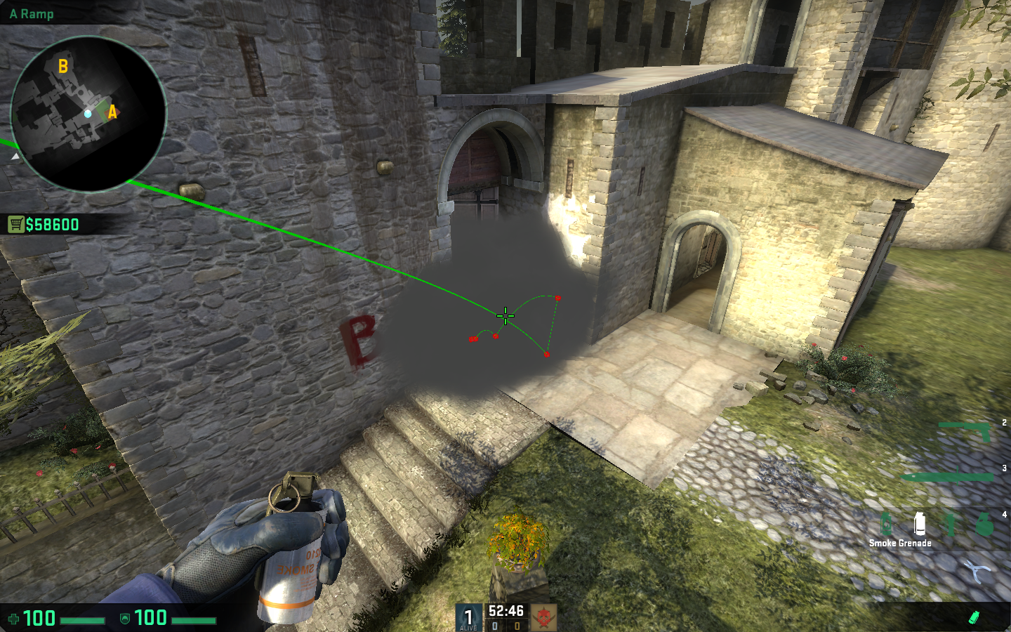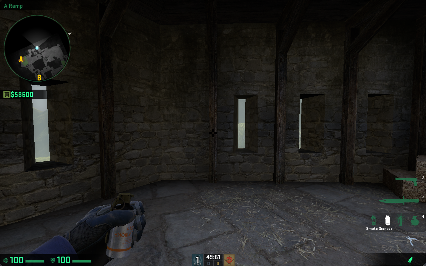 Til dette execute, skal vi bruge 3 smokes – én til døren ved connector, én til lille hus og den sidste til balcony. Alle disse kastes fra A-gange, hvor vi kan stå relativt sikkert.